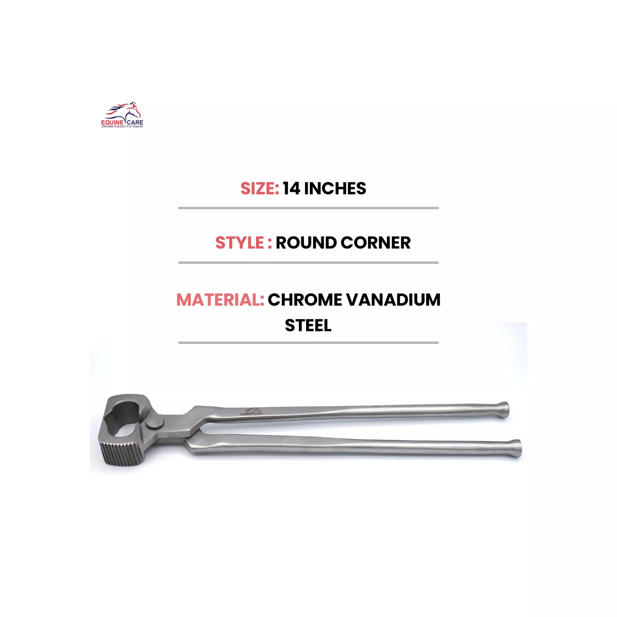 Mit der Equine Care 14-Zoll-Hufschmiedzange mit abgerundeten Ecken, inklusive Hufeisenzieher und Hufspreizer, erzielen Sie eine schnellere und sicherere Hufpflege. Dieses professionelle Hufschmiedzangen-Set ist aus robustem Chrom-Vanadium-Stahl geschmiedet und daher besonders langlebig und rostbeständig. Es wurde für Präzision und ergonomischen Komfort entwickelt und wird von Hufschmieden, Tierärzten und Pferdebesitzern geschätzt, die Wert auf Zuverlässigkeit und Kontrolle legen.