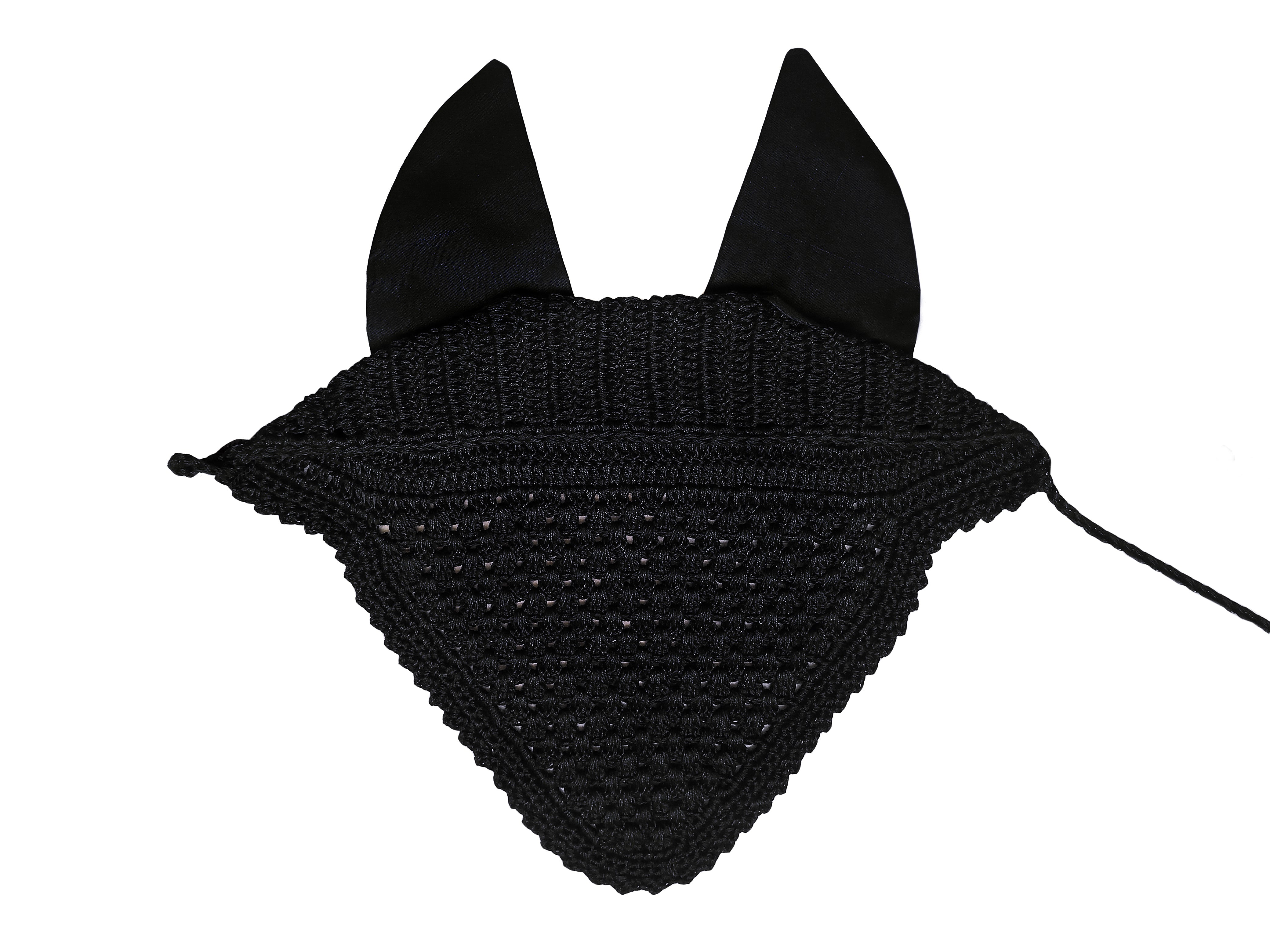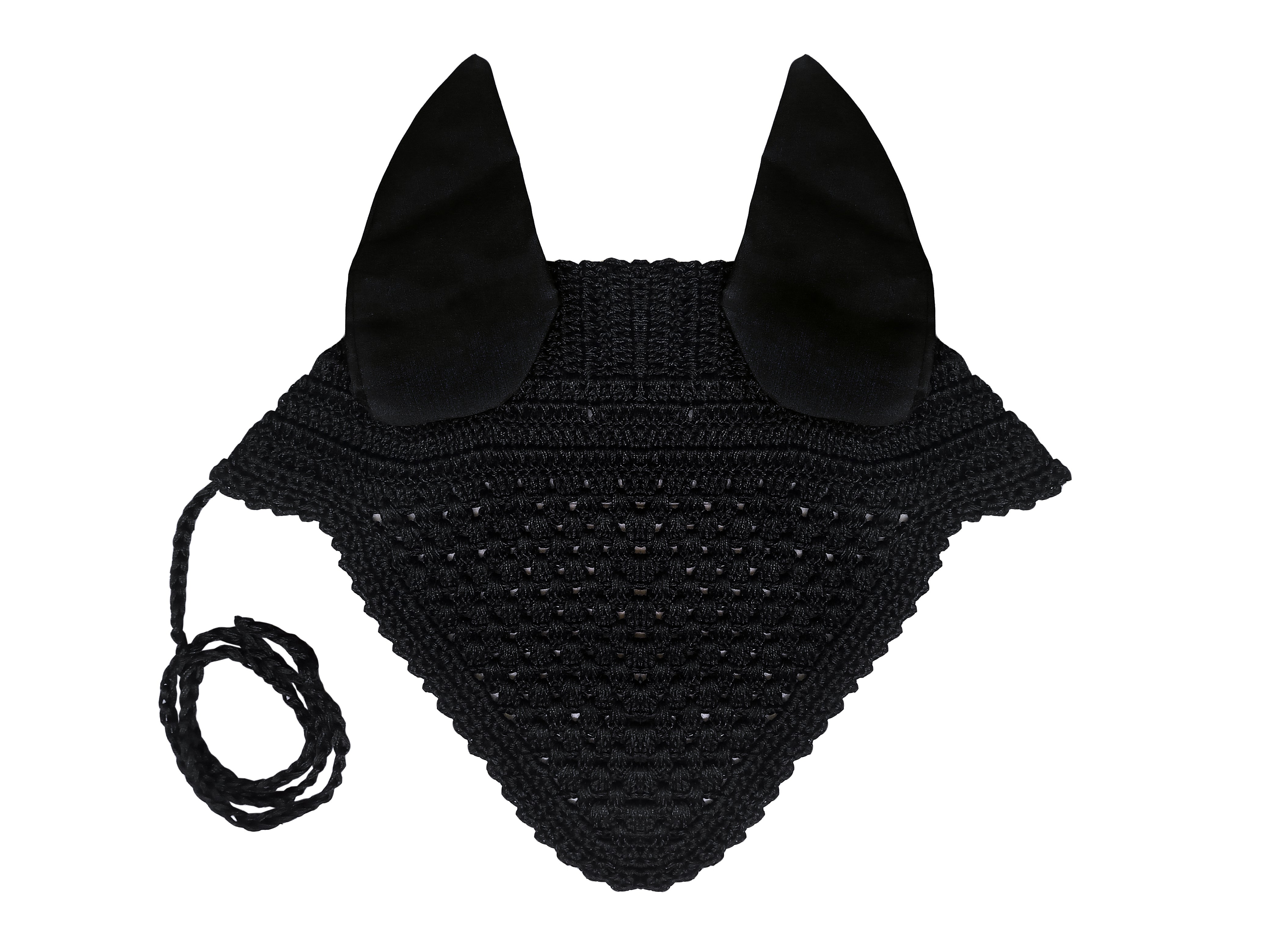 The Equine Care Full-Size Black Horse Ear Bonnet provides breathable fly protection and light noise control in a sleek, elegant design suitable for both daily training and the show ring. Crafted from black cotton crochet, this bonnet promotes airflow while shielding sensitive areas from insects and distractions.
