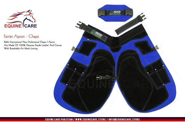 Delantal de herrador premium de cuero con soporte para la espalda y ajustable (azul)