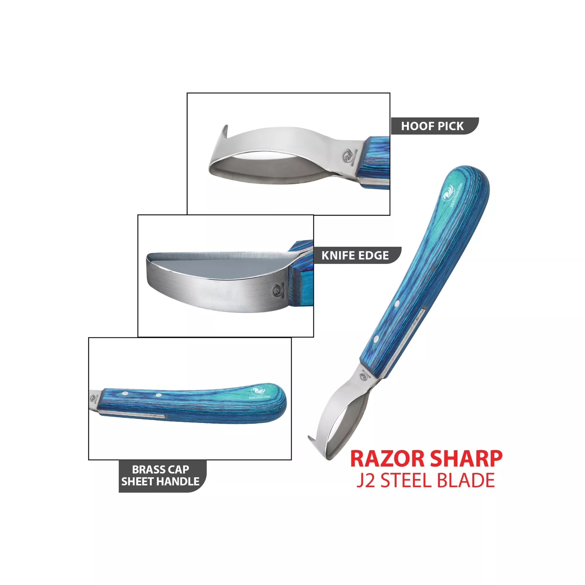 The Equine Care Blue Loop Hoof Pick Knife is a premium-quality hoof care knife designed for professional farriers and livestock owners who need accuracy, durability, and comfort in one tool. This advanced farrier loop knife features a sharp, double-edged stainless steel hoof trimming blade combined with a built-in hoof pick, giving you a complete hoof cleaning tool for daily maintenance, grooming, and corrective trimming.