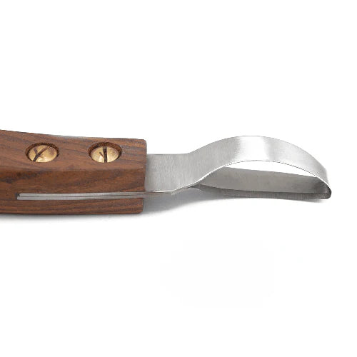 The ergonomic wooden handle offers a secure, comfortable grip, reducing strain on hands during extended trimming sessions. Built for long-term use, this farrier loop knife is rust-resistant and maintains its edge with simple upkeep.