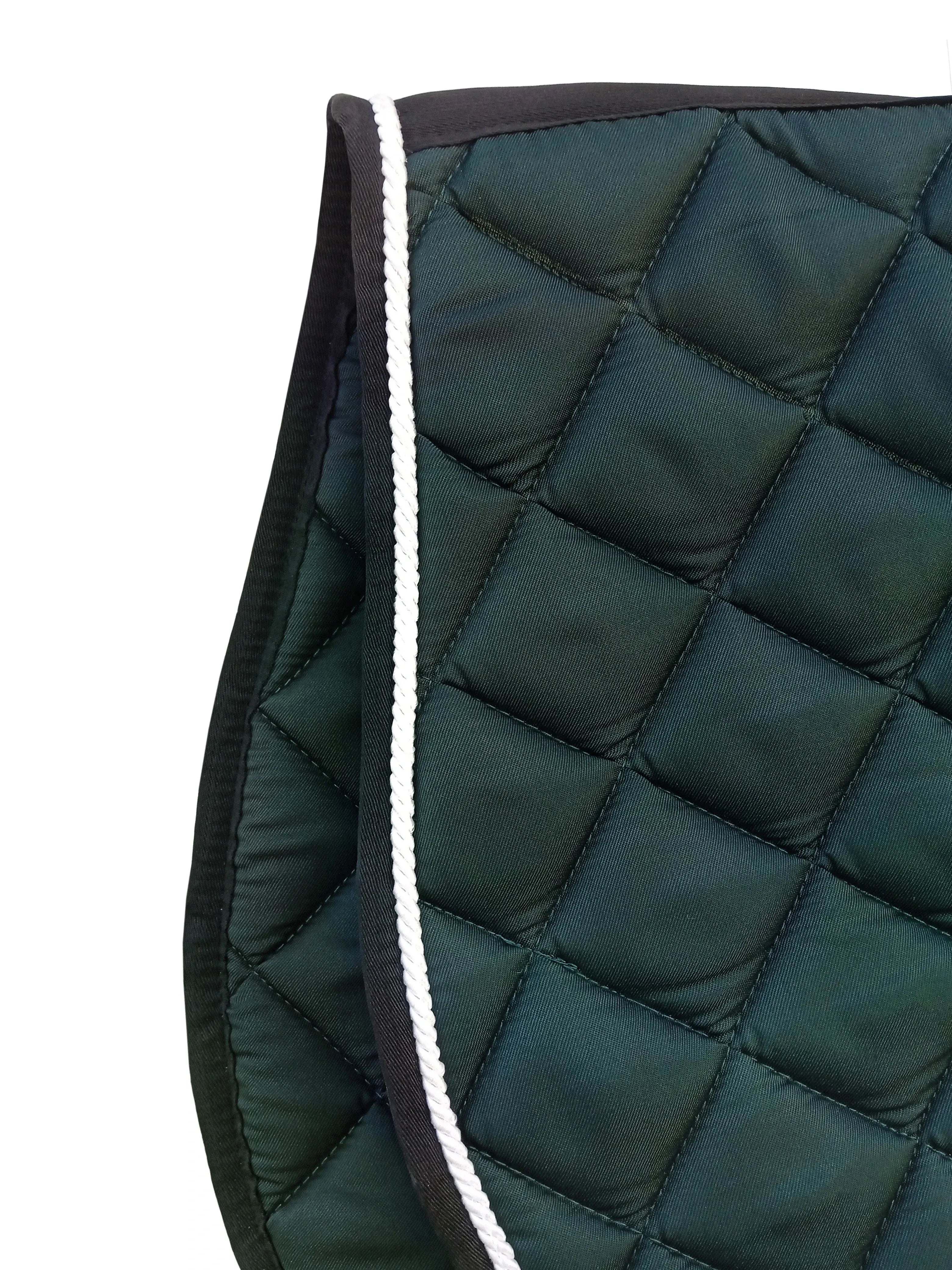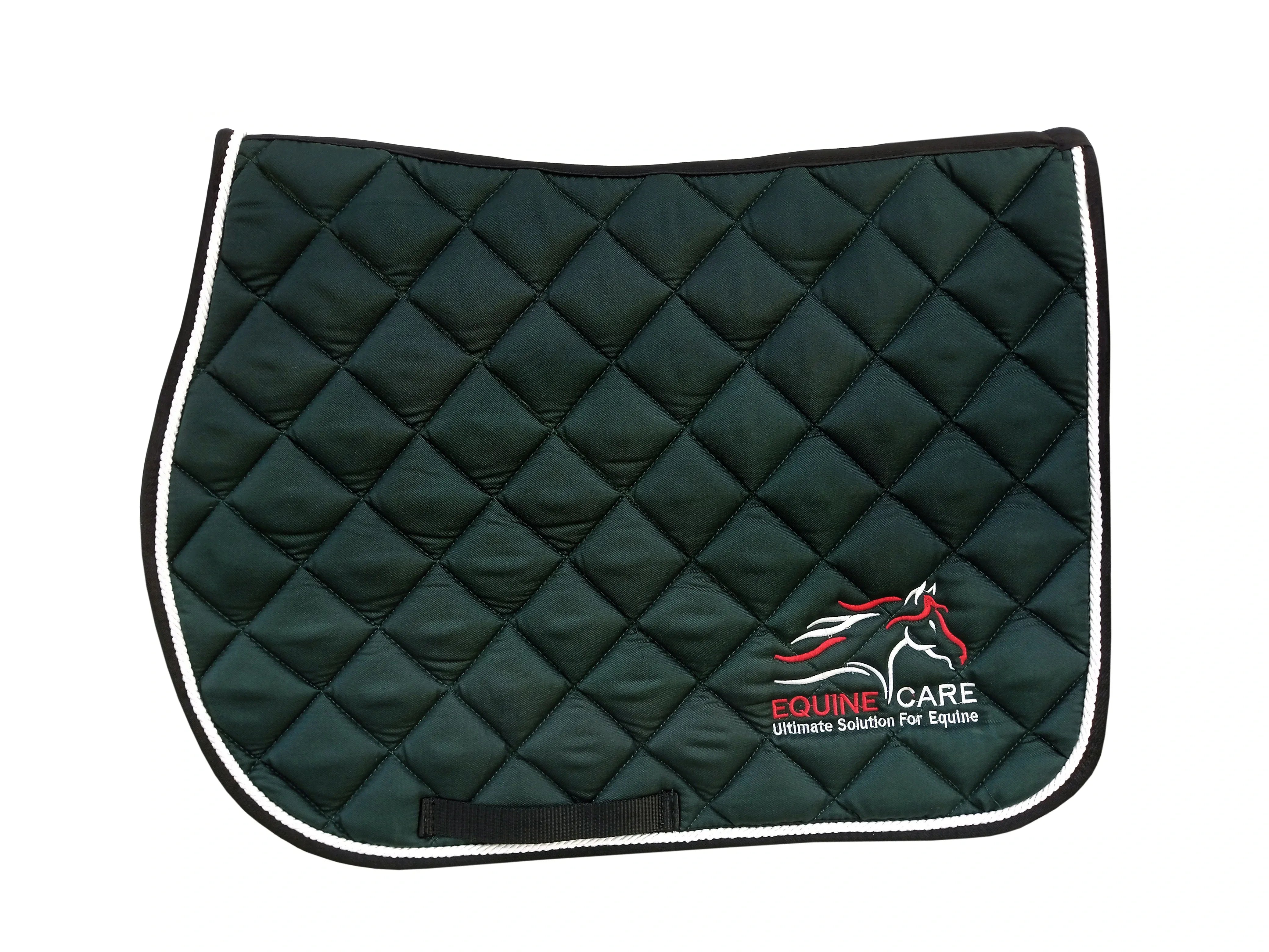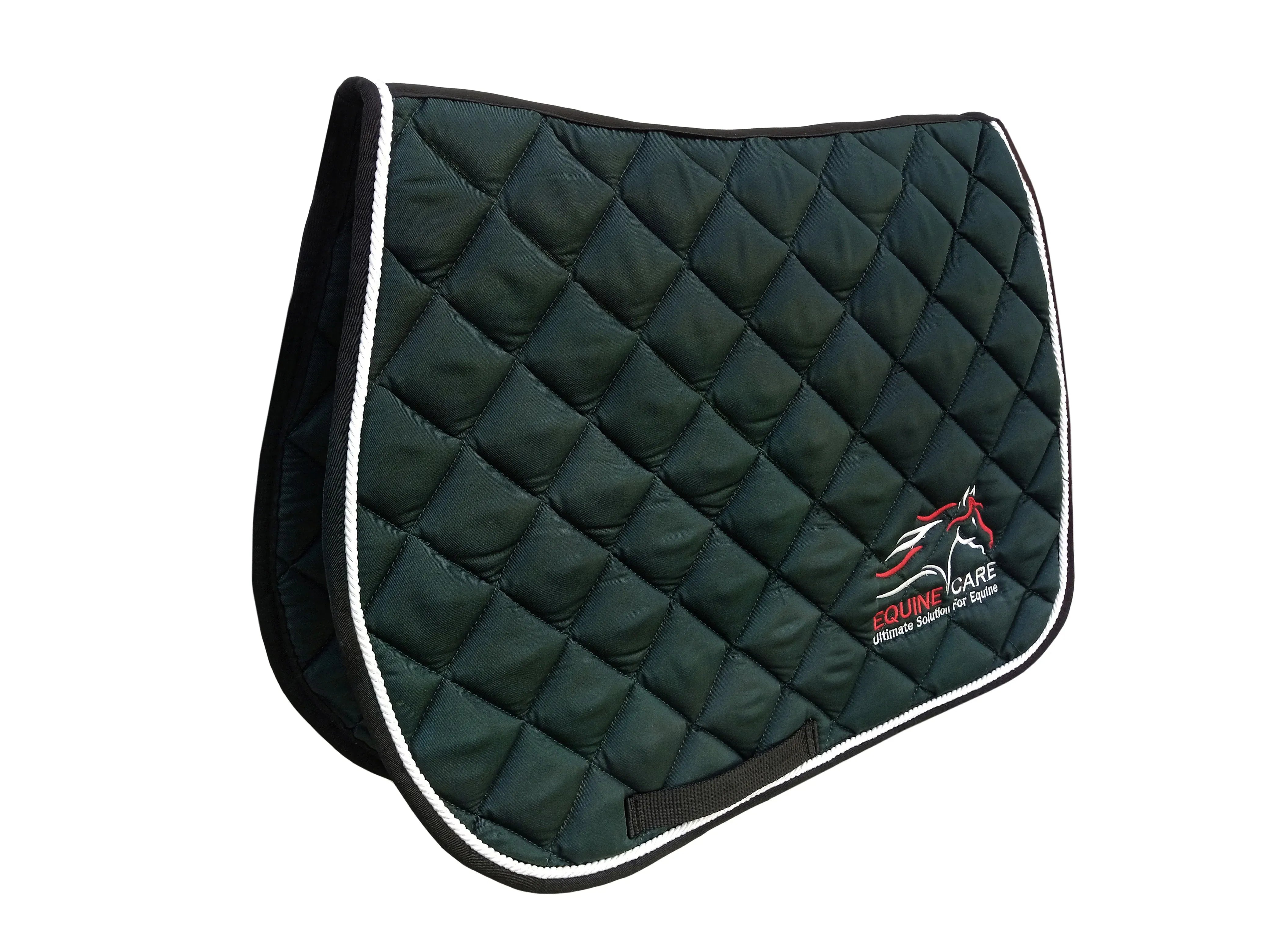 Available in Classic Black and Bottle Green, each pad is finished with white rope trim, black edge binding, and an embroidered Equine Care logo for a clean, professional look. The pad is machine washable on cold and air dries flat to retain shape and stitching.