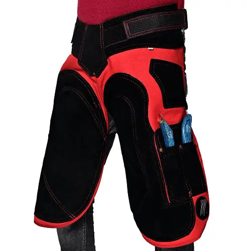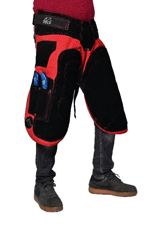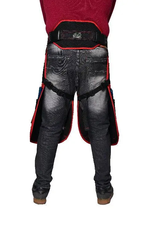 Finished in black with striking red piping, the Pro Artisan Apron combines style, safety, and functionality. Recommended by professional farrier apron users, veterinarians, and equine professionals, it’s the ultimate heavy-duty farrier apron for daily hoof trimming, horseshoeing, and blacksmithing.