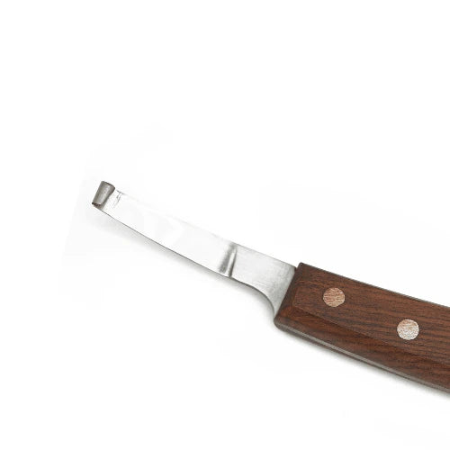 Short Blade Farrier Hoof Knife - Premium J2 Stainless Steel Hoof Trimming Knife with Ergonomic Wooden Handle, Full-Tang Rivets & Rust-Resistant Blade (Right & Left Hand Options)