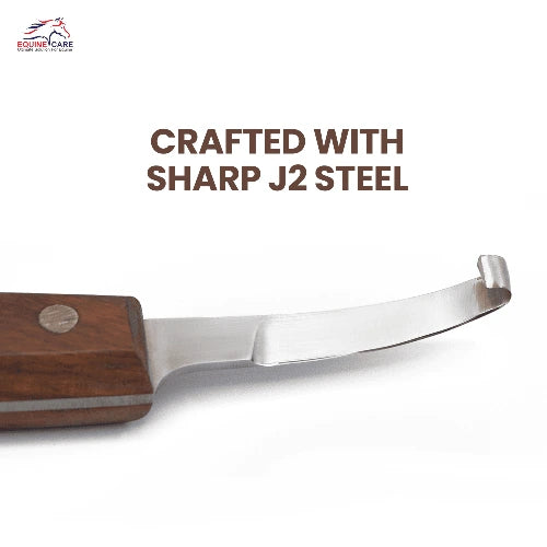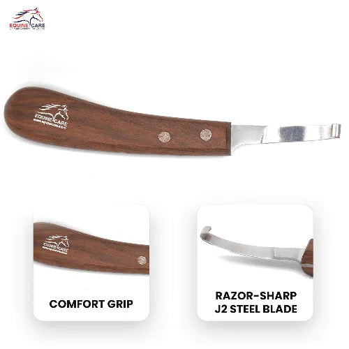Equine Care Short Blade Farrier Hoof Knife - Premium J2 Stainless Steel Hoof Trimming Knife with Ergonomic Wooden Handle, Full-Tang Rivets & Rust-Resistant Blade (Right & Left Hand Options)