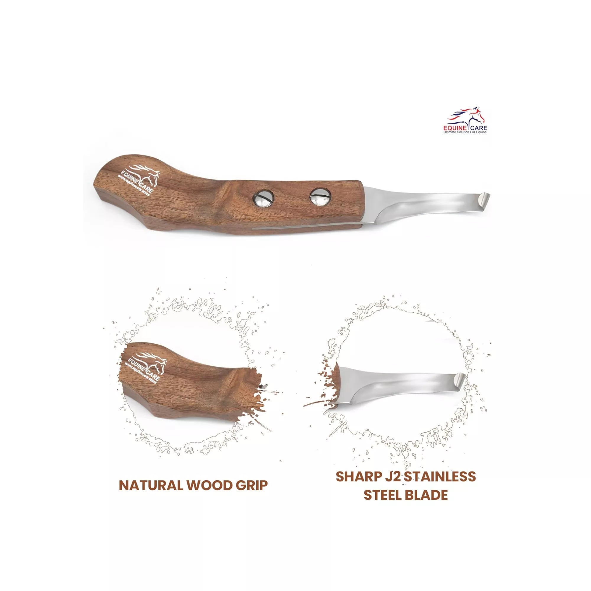 Equine Care Wooden Farrier Hoof Knife - Premium Stainless Steel Hoof Trimming Knife with Ergonomic Sheesham Wood Handle, Brass Rivets & Curved Blade for Horses & Livestock (Right & Left Hand Options)